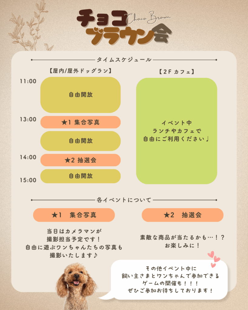 今回は“チョコブラウン会”と題して茶色・ブラウンのワンちゃんのためのオフ会です!