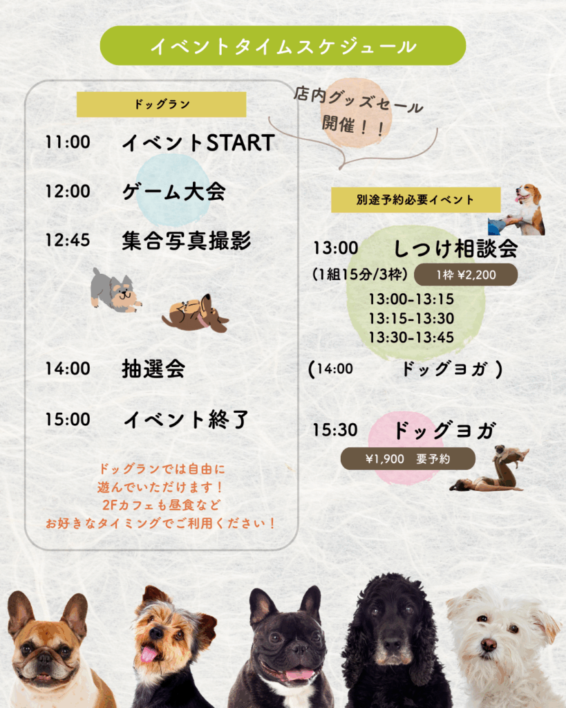 入場料:¥2,200(飼い主1名とワンちゃん1頭)