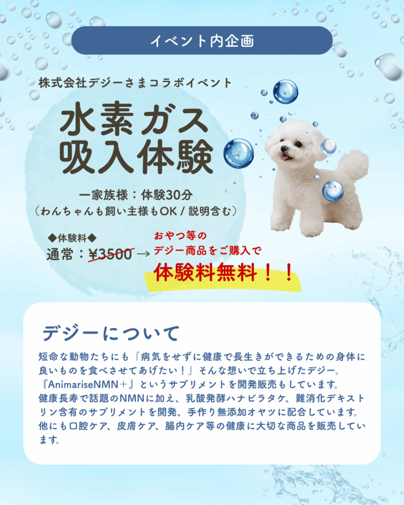 株式会社デジー様とのコラボ企画の、水素ガス吸入体験ができるオフ会です!(要予約)